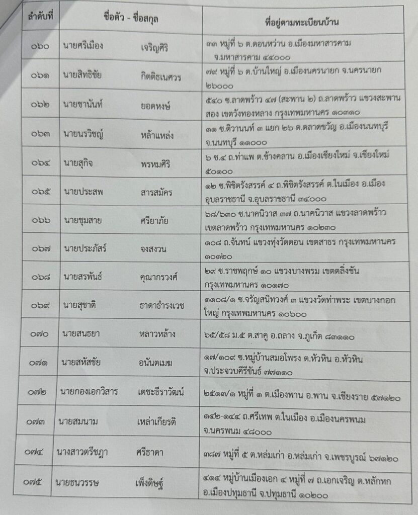 เผยช อ100ปาร ต ล สต เพ อไทย คนด งเพ ยบ ม ช อ ส ชาต ต นเจร ญ เม ยบ กก ล กธาร ต